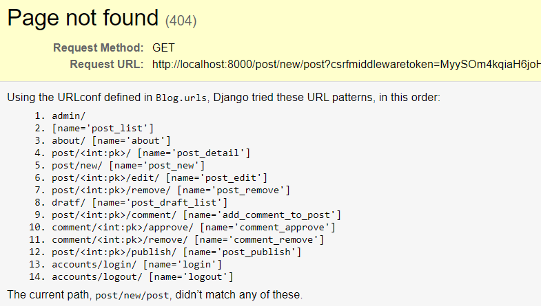 Hi I try to make a blog using CBV. I want after create a new post in post_form.html the CreateView will redirect to the new post_detail I just made. So I was search on gg and try both get_success_url and redirect_field_name. But it still had error Page not found
