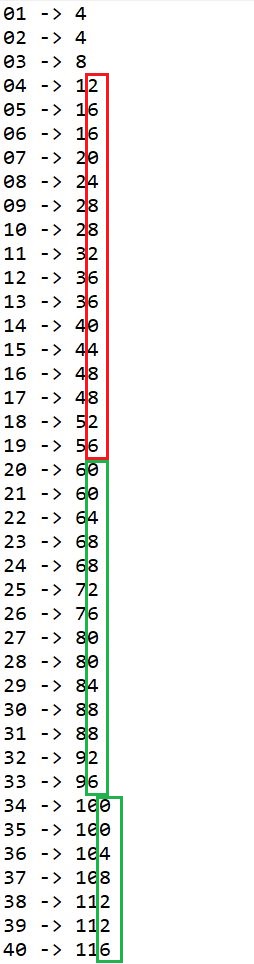 Nothing special went into this, other than observing that it’s i * <something> rounded to the nearest multiple of 4, and playing around with the <something>, so this might diverge further on in the sequence and need a bit of tweaking.