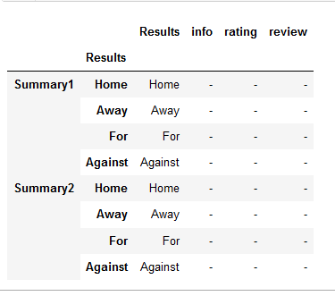 dfTable2.index =pd.MultiIndex.from_product([[f'Summary2'], dfTable1.Results])