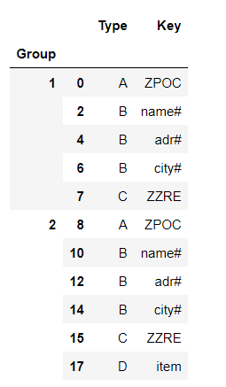 'Key': ['ZPOC', 'adr#', 'name#', 'city#', 'adr#', 'city#', 'city#', 'ZZRE', 'ZPOC', 'adr#', 'name#', 'city#', 'adr#', 'city#', 'city#', 'ZZRE','item','item']