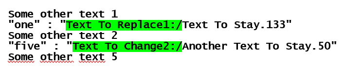 "one" : "Text To Replace1:/Text To Stay.133"