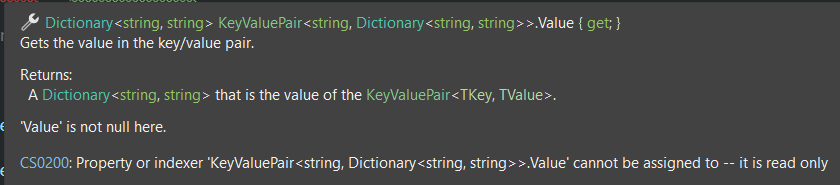 var newEntry = new KeyValuePair<string, string>(entry.Key, replaceString);