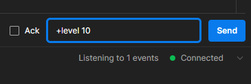 On fortunately, this does not work. I am using Postman set it to Socket.IO and then I am sending like this: +level 10.
