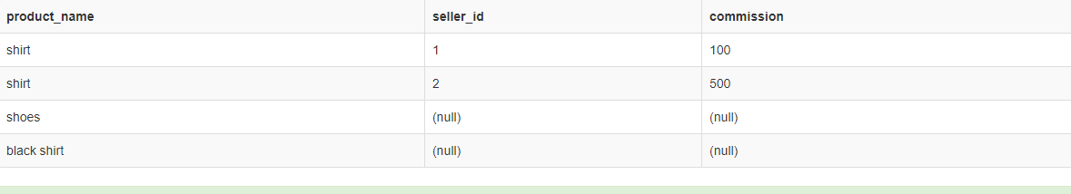 In first query, is something similiar with what I want. Get all products and seller_commission, but I want this for a specific seller, but when I try to use WHERE clause, I don’t get all products, because seller_id can be null. I try some variations of these queries, but can’t get the expected result :/. Appreciate any help.