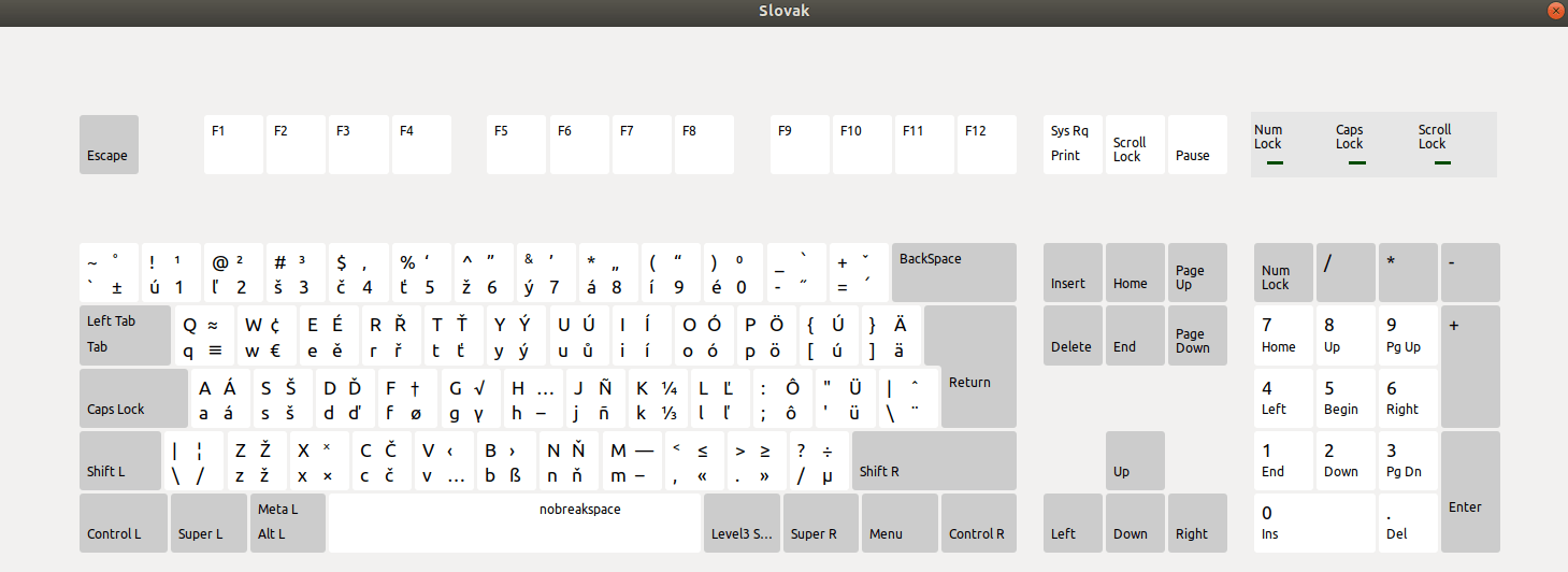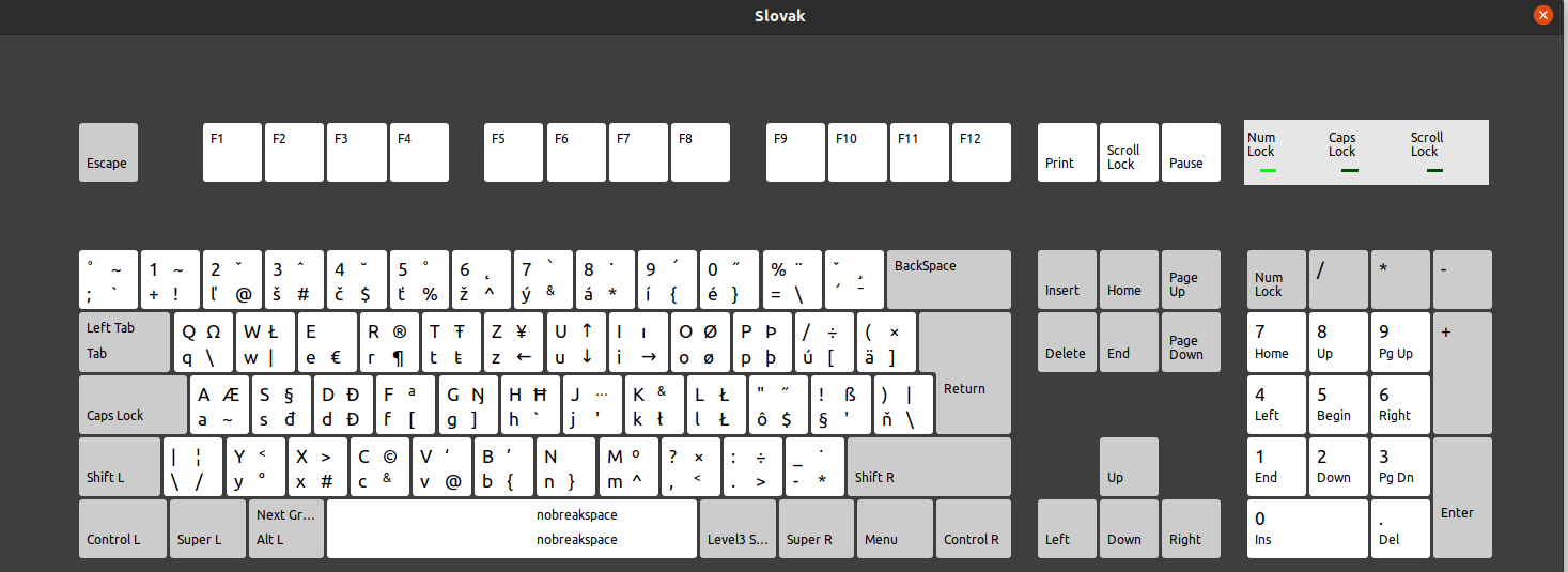 When I set the keyboard layout to Slovak, I get this: