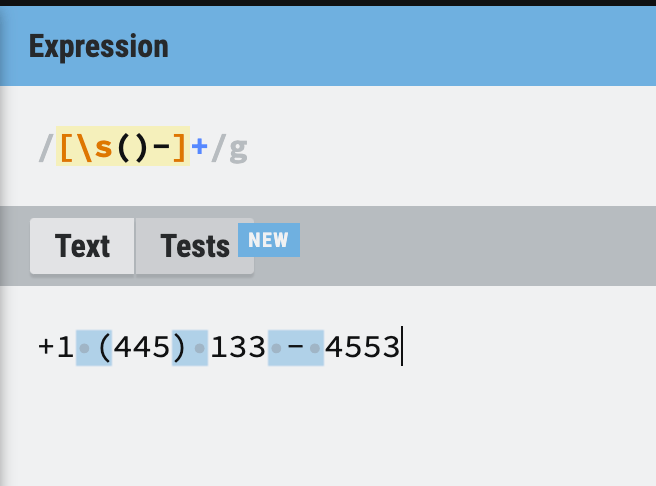 so target the inital +1 and then all brackets, dashes and spaces so I can perform a str.replace(regex, "").