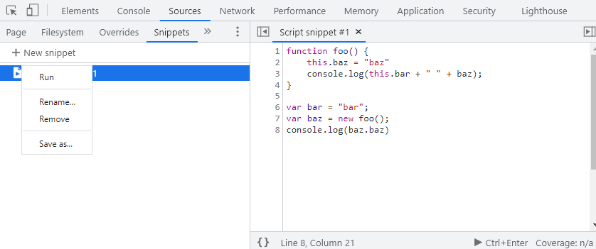 You can now open and run the snippet whenever you want by right clicking on it and pressing Run.