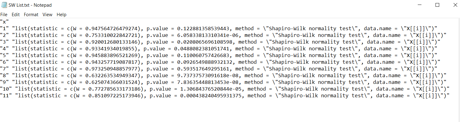 I am doing a Shapiro Wilks test for multiple variables.