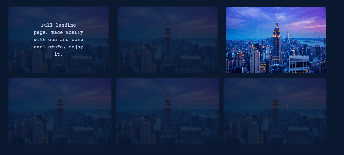 Full landing page, made mostly with css and some cool stufs, enjoy it.