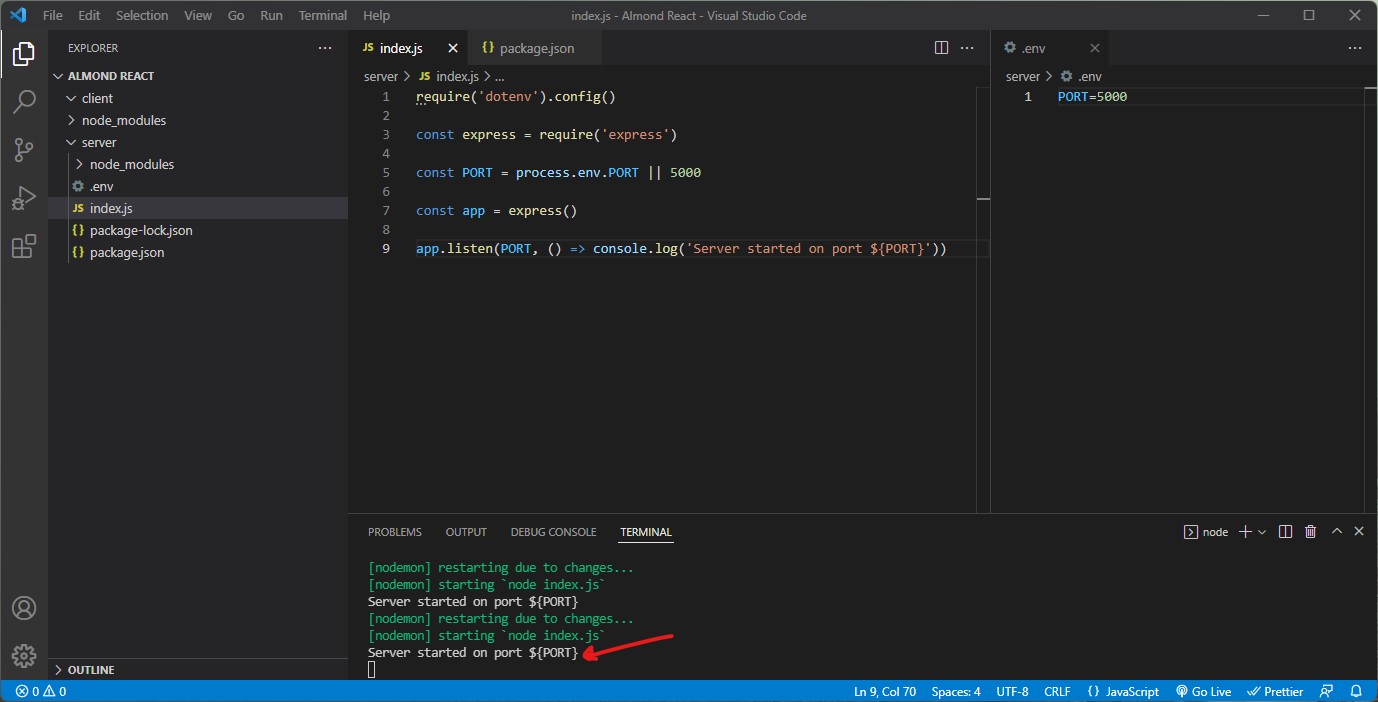I don’t understand why it says "Server started on port ${PORT}" instead of PORT 5000