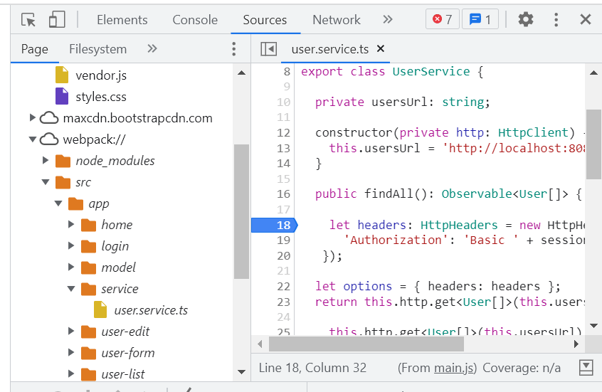 I’m new to angular, I wrote an interceptor to test Basic Authentication, the problem is that the interceptor is never called. So I tried to launch my application in debug mode and what I discovered that interceptor is not included in deployed pages.
