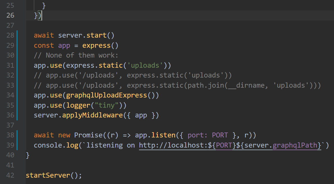 I am unable to access static files in uploads folder. Visiting the URL (http://localhost:4002/uploads/test.jpg) gives: Cannot GET /uploads/test.jpg