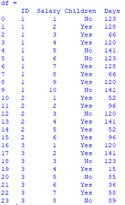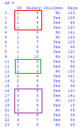 data = {'ID': [1, 1, 1, 1, 1,1, 1, 1, 1, 1, 2, 2, 2, 2, 2, 2, 3, 3, 3, 3, 3, 3, 3, 3],