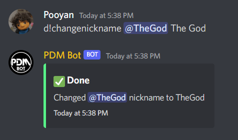 .setDescription(`Changed <@${target.id}> nickname to ${nickname}`)
