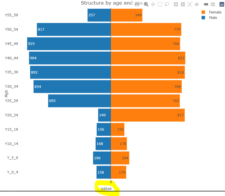 I am trying to plot a pyramid plot. Below you can see data and code :