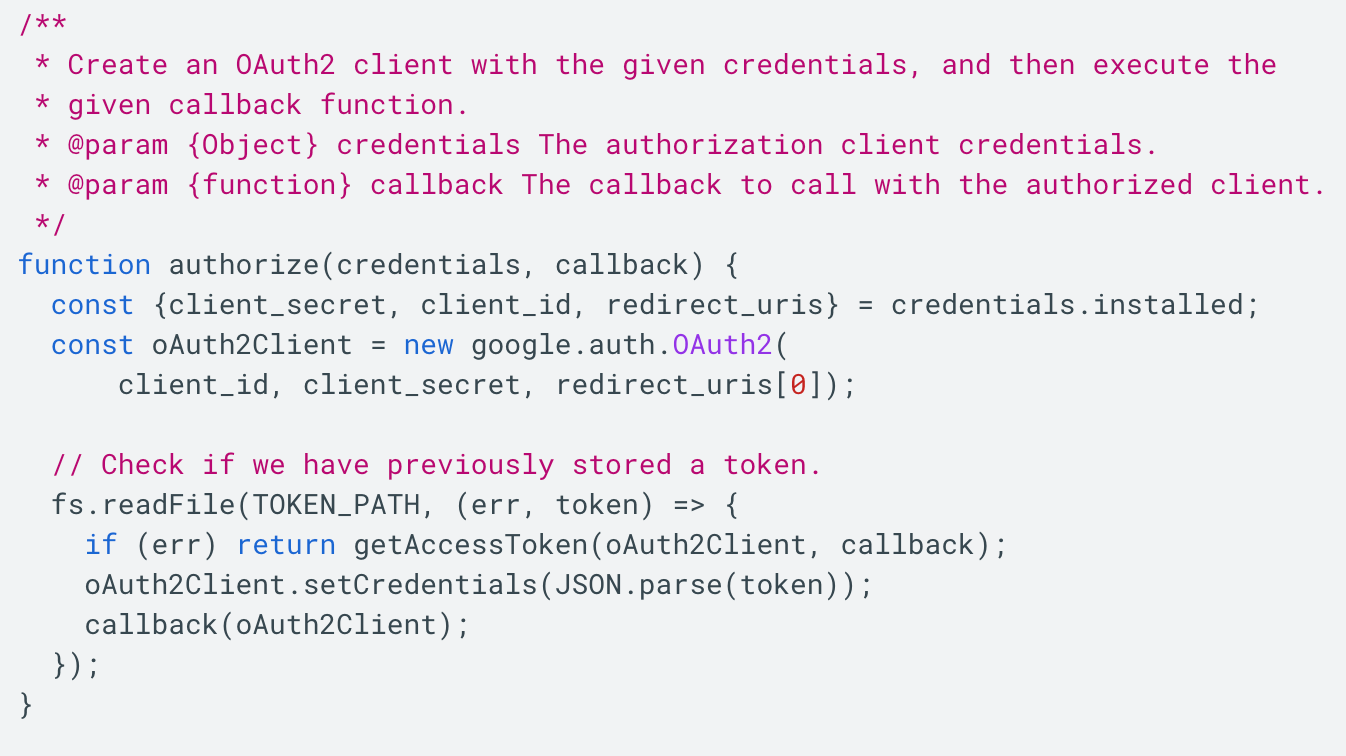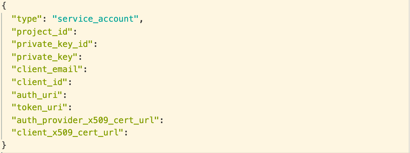 I’ve followed the quickstart guide and set up a service account & key as instructed here, but upon creating the key as instructed in the second link, it doesn’t look like I have the correct credentials.json file. The JSON file I get after generating a key on the Google Developer Console has the following object keys (values intentionally removed):
