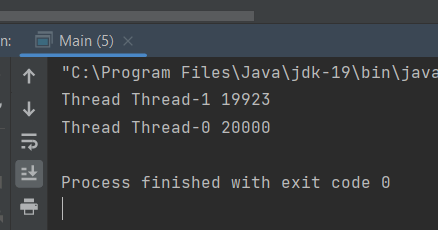 I thought my output from 2 threads will be 20000. But I am getting 20000 as output of one thread and other one shows some random value between 10000 and 20000.