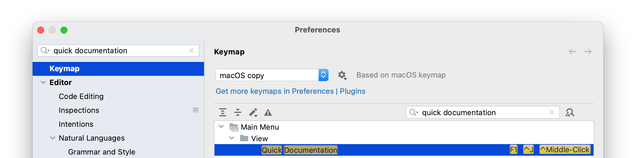 Intellij shows method parameter information when Ctrl+P is pressed. Sometimes this is not enough and I need to see a JavaDoc of such a method. How do I do this? I could press Ctrl+B on methodand then IntelliJ goes to the source of the method. This is a bit too long as I need to press Ctrl+Alt+Left to get back to the place I was before in the editor window.