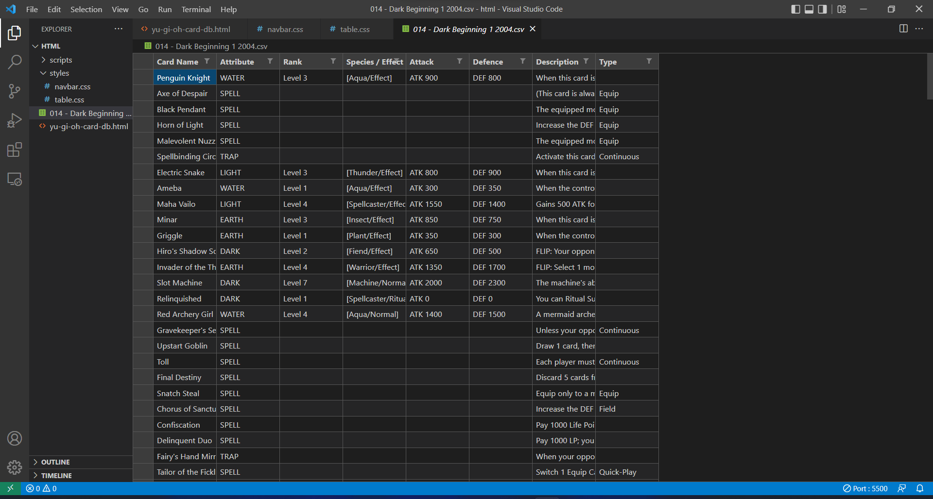 The very first entry in the .csv file is an easy example of what’s going on. It also isn’t everything in that column. The table is being read in through ajax and jQuery with the following code: