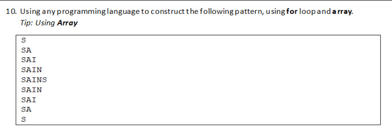 const arr = ['S','A','I','N','S'];
