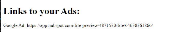 <p> Google Ad: https://app.hubspot.com/file-preview/4871530/file/64638361866/</p>