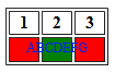 I need that the text span in 3 columns but I must keep the background color of the cells different: example first cell red, secon cell green third cell red
