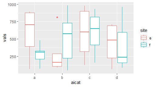 I want to plot this data with boxplot, where on x I have the aicat variable and where I also group the data by site.