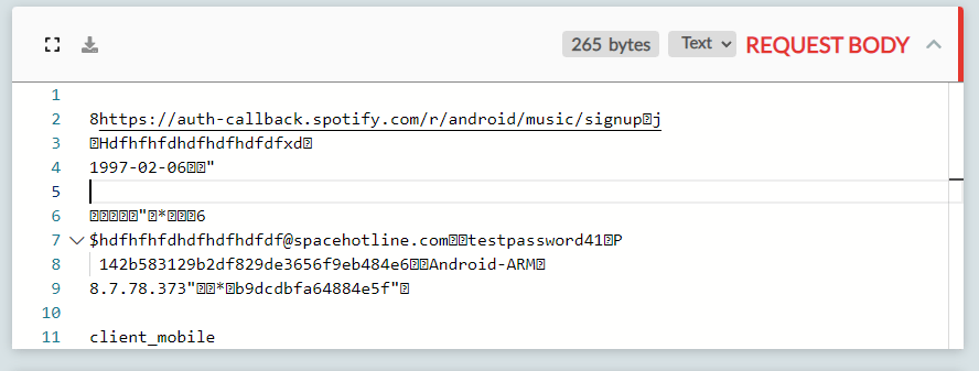 You can still try to decode the data into raw data types though, although that might not allow you to decode all information immediately. There’s more info on that here: raw decoder for protobufs format. Decoding data like this works best using the protoc command-line tool, but you may also be able to decode this data using https://protobuf-decoder.netlify.app/. Note that that takes hex data, not a raw string like you have here, so you’ll have to pick the ‘Hex’ option for the body in HTTP Toolkit to copy the hex codes over instead.