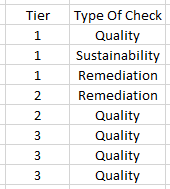 My issue is that I want to select all rows for ‘Tier’ 1 & 2 but for ‘Tier’ 3 I only want rows where the following column ‘Type Of Check’ = Quality so the desired output would look something like this: