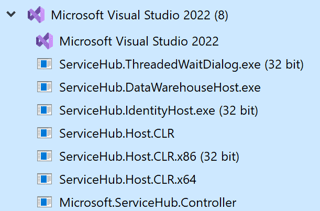 Task Manager shows the following for an instance of Visual Studio: