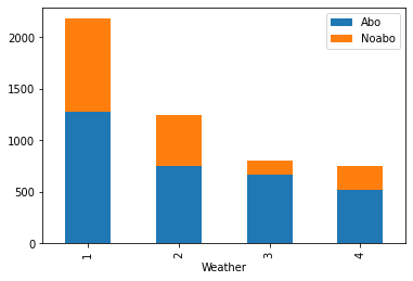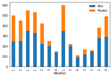 df.set_index('Weather')[['Abo', 'Noabo']].plot.bar(stacked=True)
