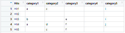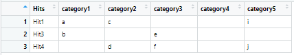 #> Hits category1 category2 category3 category4 category5