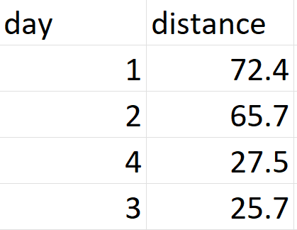 expected_result = pd.DataFrame(expected_result, columns = ['distance','day'])
