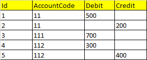 sum(Debit) as TotalDebit,