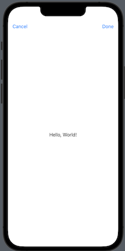 .navigationBarItems(leading: Button("Cancel", action: {presentationMode.wrappedValue.dismiss()}), trailing: Button("Done", action: { }))