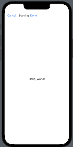 .navigationBarItems(leading: HStack { Button("Cancel", action: {}); Spacer(); Text("Booking"); Spacer(); Button("Done", action: {})}.frame(width: .infinity))