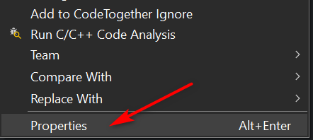 From the project explorer right click on this file and select properties: