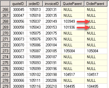 I need to fill all the OrderParent columns with valid (not null) values in QuoteParent column.