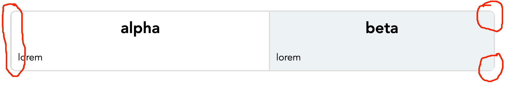 The left side border is too thick, and the background colour on the right doesn’t quite fit perfectly within the border radius: