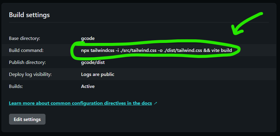 npx tailwindcss -i ./src/tailwind.css -o ./dist/tailwind.css && vite build
