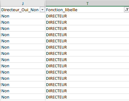 The output of this is i’ve got "Non" everywhere but there are some "DIRECTEUR" in "Fonction_libelle" column. Of course there is something wrong but i’m not able to see what…