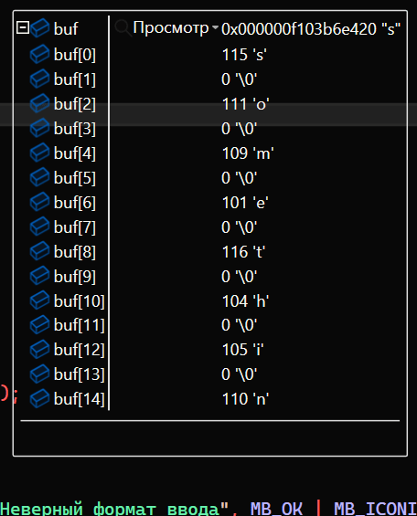 I want to save text in txt file. I enter "something" in edit control and click IDC_ADD, then I debug code and char array buf has \0 after each element. I think it is cause why "something" is not saved.