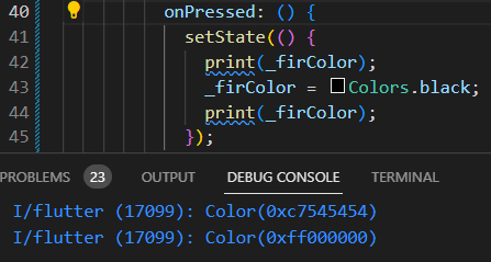 Printing _firColor always has same result. It prints 2 lines after one click.
