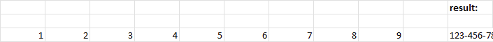 =TEXTJOIN({"","","-"},TRUE,A1:I1)