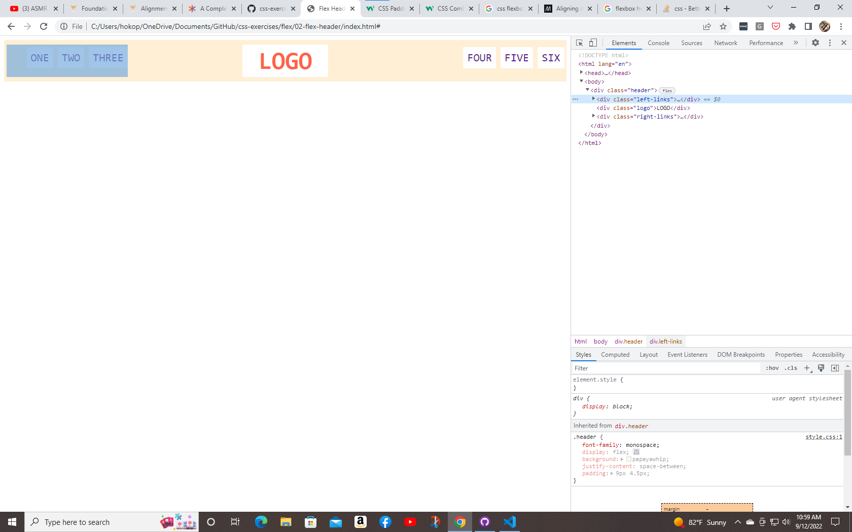 - There is space between all items and the edge of the header (specific px amount doesn’t matter here).