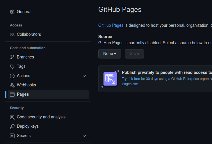 as the title says, when i go to repository settings and scroll down i don’t see the Github Pages section. Did i do something wrong ?