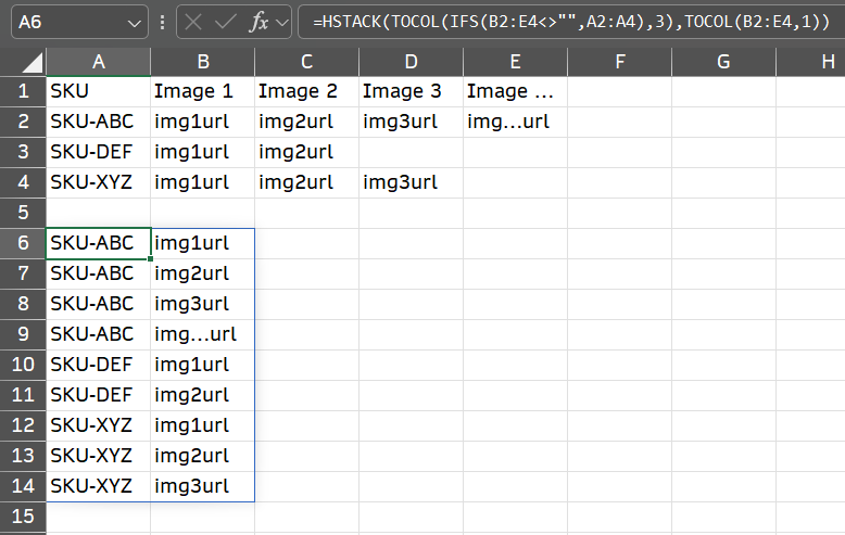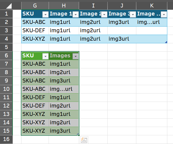 #"Unpivoted Other Columns" = Table.UnpivotOtherColumns(Source, {"SKU"}, "Attribute", "Value"),