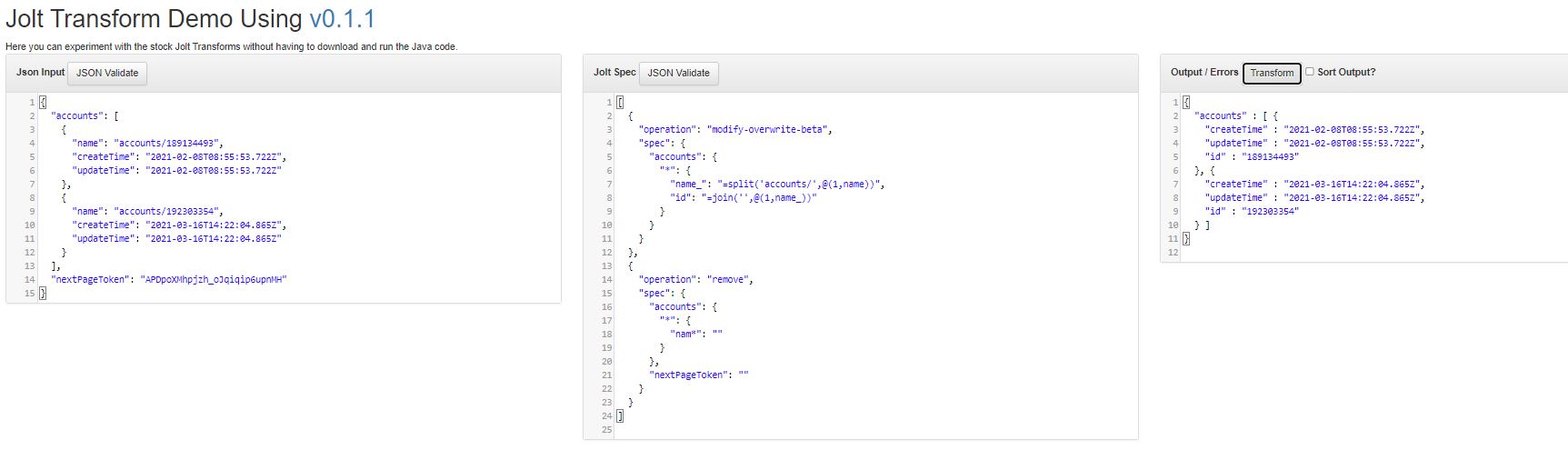 Now I need to grab values from name, and get value after accounts/ and store it as id.