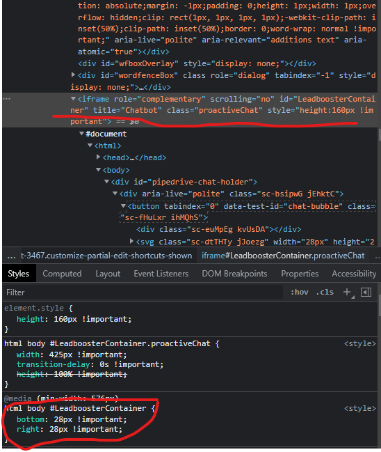 I’m attempting to add additional CSS to WordPress to move an iframe up using Bottom: and changing it from 28px to 71px and I can’t for the life of me get it to work.