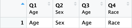 $ Q1: chr "Age"